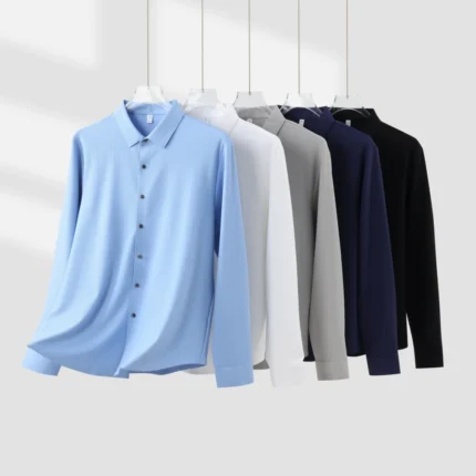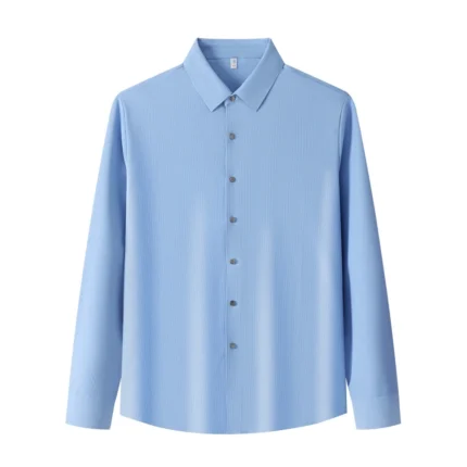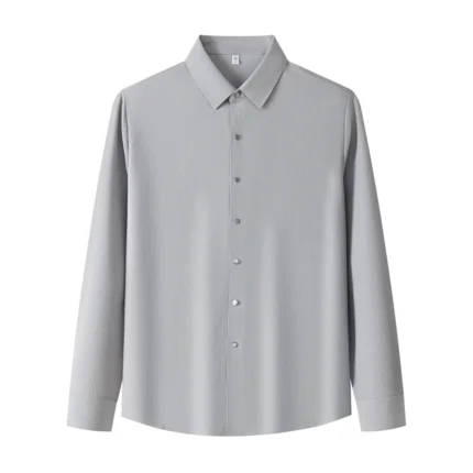 Lightweight Men’s Long Sleeve Shirt with Ribbed Texture Autumn Versatile Wrinkle-Resistant ODM Supply