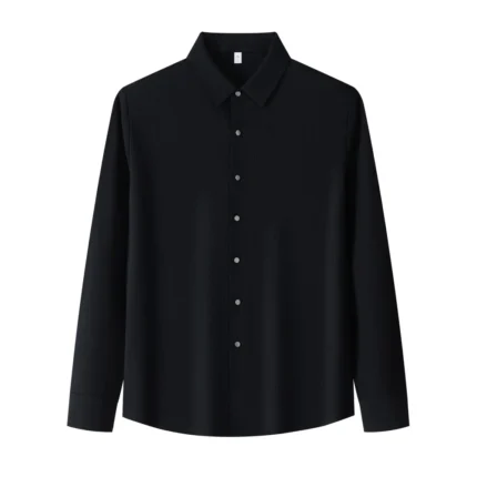 Lightweight Men’s Long Sleeve Shirt with Ribbed Texture Autumn Versatile Wrinkle-Resistant ODM Supply-Black / 3 XL